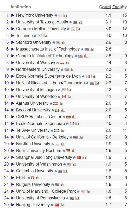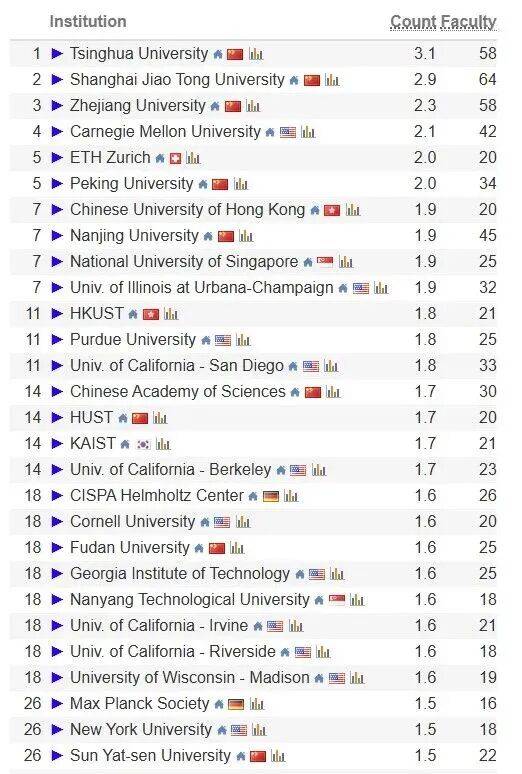 卡内基梅隆大学位列第一。延世大学全球排名第81名。正在计较机系统、交叉学科范畴均占领领先地位。大学也位列第4,位列第5名,新加坡国立大学劣势显著,滑铁卢大学正在分析排名中位列第34名。以色列特拉维夫理工学院位列第3名,纽约大学位列第一。科技大学表示凸起,伊利诺伊大学喷鼻槟分校位列第18名;大学前进显著,伊利诺伊大学喷鼻槟分校(UIUC)位列第五,CSRankings由美国麻省大学阿默斯特分校Emery Berger传授创立,